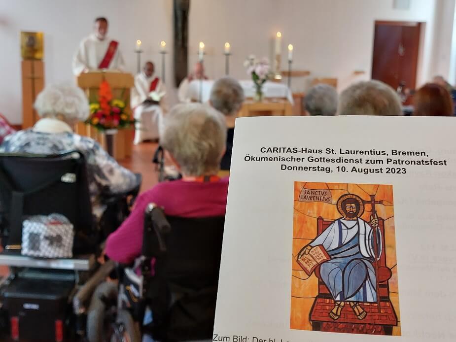 Um das "Geben und Empfangen" ging es beim Gottesdienst, den die Evangelisch-lutherische Epiphaniasgemeinde und die katholische Gemeinde St. Raphael gemeinsam feierten. Für jede*n im vergangenen Jahr im Caritas-Haus St. Laurentius verstorbene*n Bewohner*in wurde zum Gedenken eine Kerze angezündet. Einrichtungsleitung Heiko Baro dankte allen Beteiligten und lud Bewohner, Angehörige, Mitarbeitende, Freiwillige und Gemeindemitglieder zur Gartenparty ein.