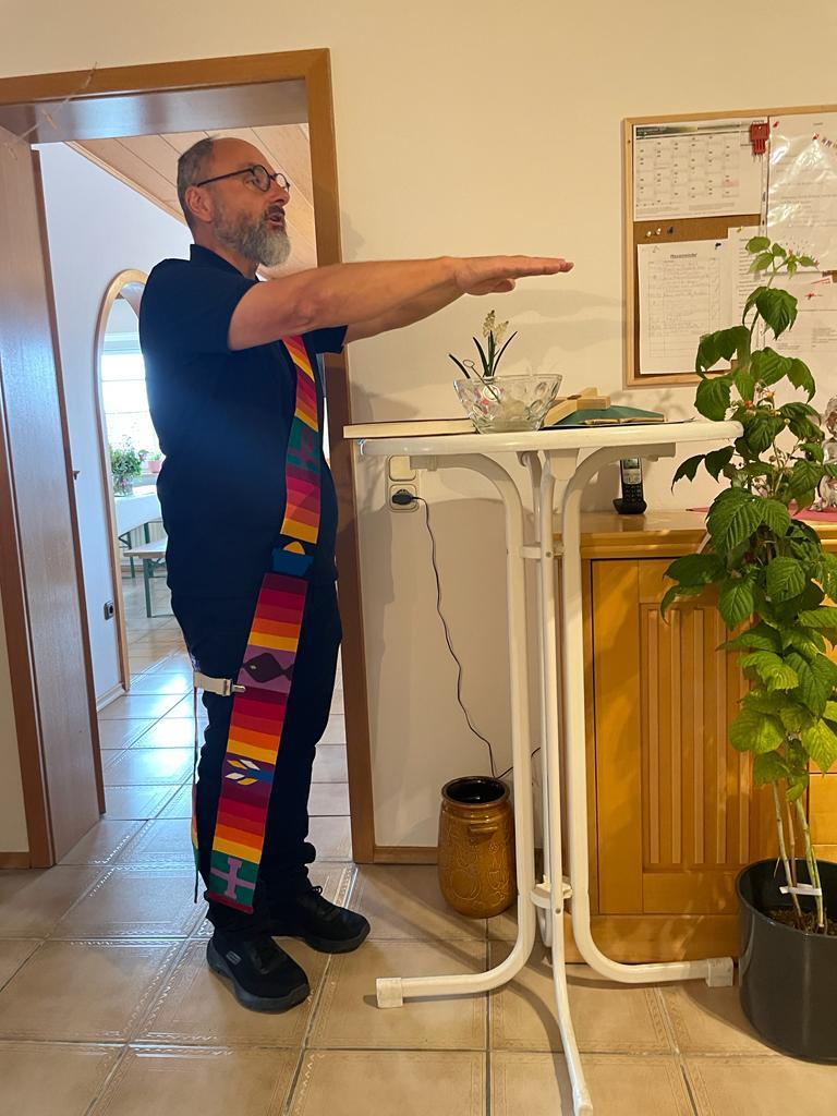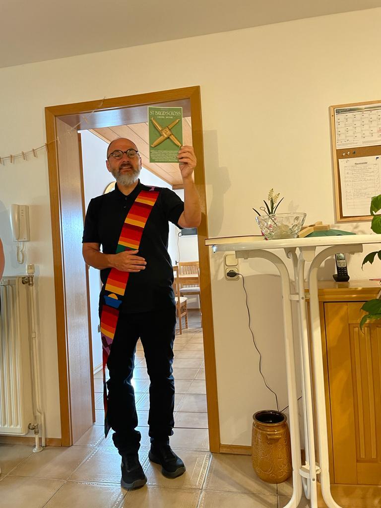 Einrichtungsleitung Anna Ganghofer konnte neben den Klient*innen und Kolleg*innen des ambulant betreuten Wohnens und der Wohngemeinschaft, auch die geschäftsführende Vorständin des KCV, Kathrin Seiler, den Aufsichtsratsvorsitzenden des KCV, Franz Zehentreiter, Vermieter Manfred Hasmann sowie Diakon Mario Unterhuber begrüßen. Ihr Dank galt allen Anwesenden und den Hausmeistern für die Unterstützung, vor allem bei den Umzügen. Diakon Mario Unterhuber segnete anschließend die Räume und die beiden Kreuze. Eines der Kreuze war ein Geschenk von Diakon Unterhuber: er hatte dieses aus Irland mitgebracht. Alle Gäste durften als "Gästebuch" ihre Wünsche auf kleine Zettel schreiben. Diese wurden dann an einer Girlande angebracht. Und eine Himbeerpflanze gab es auch noch zur Einweihungsfeier. Bei Kaffee und Kuchen, teilweise von den Klient*innen selbst gebacken, ließ man die Einweihungsfeier gemütlich ausklingen.