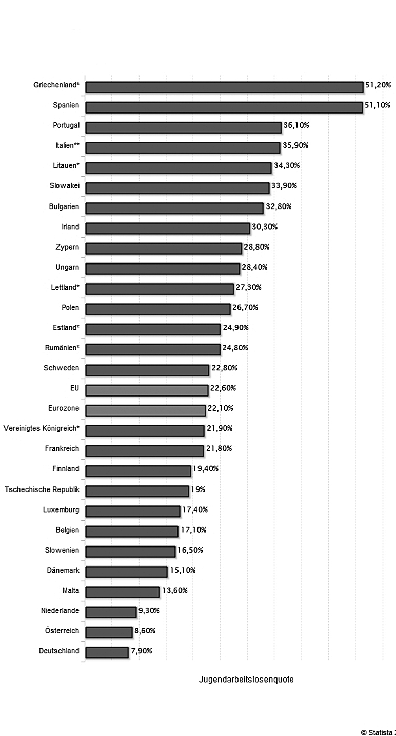 Da die Jugendarbeitslosigkeit ein europaweites Problem ist und 51 Prozent der EU-Bürger denken, dass mit Blick auf junge Menschen die Beschäftigung Vorrang für die EU haben sollte11, stellt sich die Frage, was Deutschland und die Europäische Union tun beziehungsweise tun sollten, um diesem Problem zu begegnen.