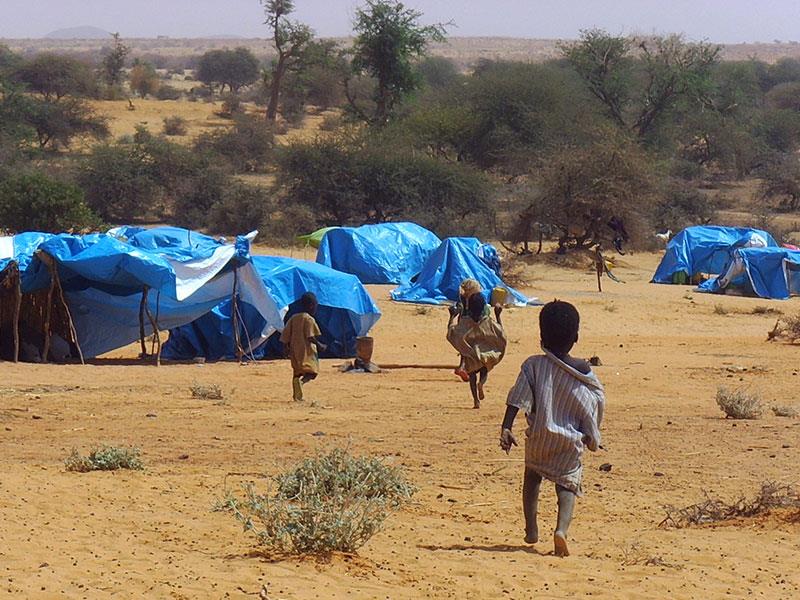 Die meisten Flüchtlinge in einem Lager im Niger leben unter Zeltplanen, die nur über Stöcke gespannt sind.Caritas International