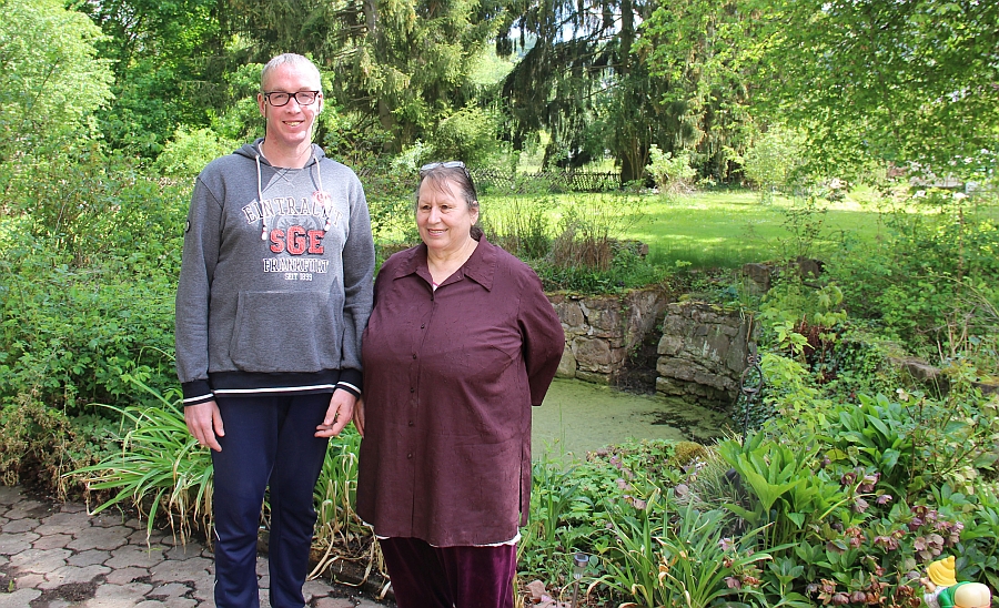 Das Begleitkonzept für Andreas Berry beinhaltet gleich mehrere "Instanzen": Marie-Luise Kutt-Schüler - seine Mutter, wie Andreas sie selbst nennt, sorgt für ihn tatsächlich wie für einen Sohn. Andererseits hat Andreas zu Hause auch als vollwertiges Familienmitglied entsprechende Pflichten, etwa sein Zimmer in Ordnung zu halten und im Haushalt mitzuhelfen. "Jetzt zu Corona-Zeiten, wo die Werkstätten nicht zugänglich sind, hat der Andy hier bei mir seine Arbeitstherapie", erläutert lächelnd die Hausherrin. "Er hat in den vergangenen Tagen ordentlich im Garten mit angepackt, damit wir hier alles für den Sommer schön haben."