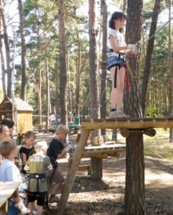 Im Kletterwald: Gut gesichert und mit gegenseitiger Unterstützung ging es für die Kinder hoch hinaus.Jugendhaus