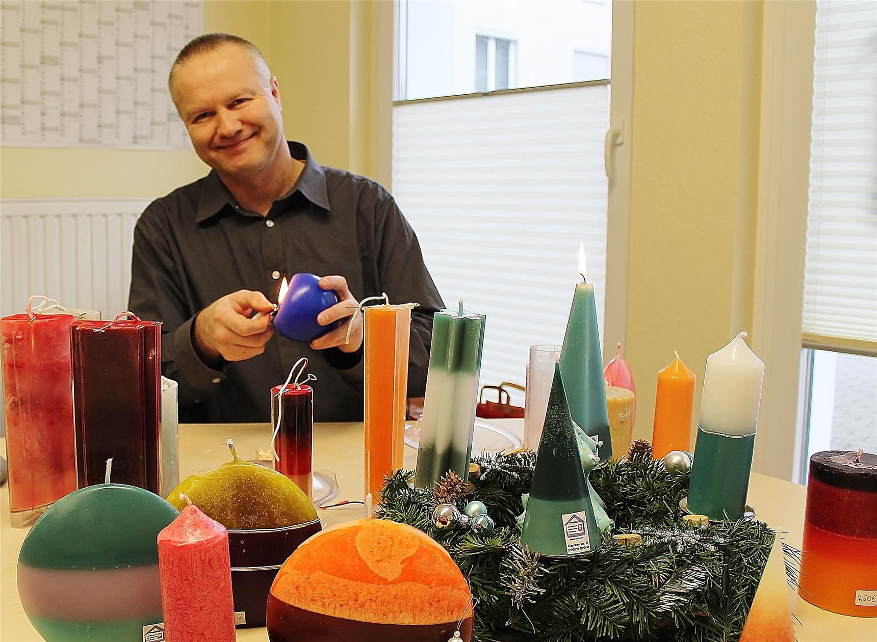 Michael Überall fertigt in der Kerzenmanufaktur der Caritas Brilon eigenhändig Kerzen-Unikate. (Foto: Wamers)