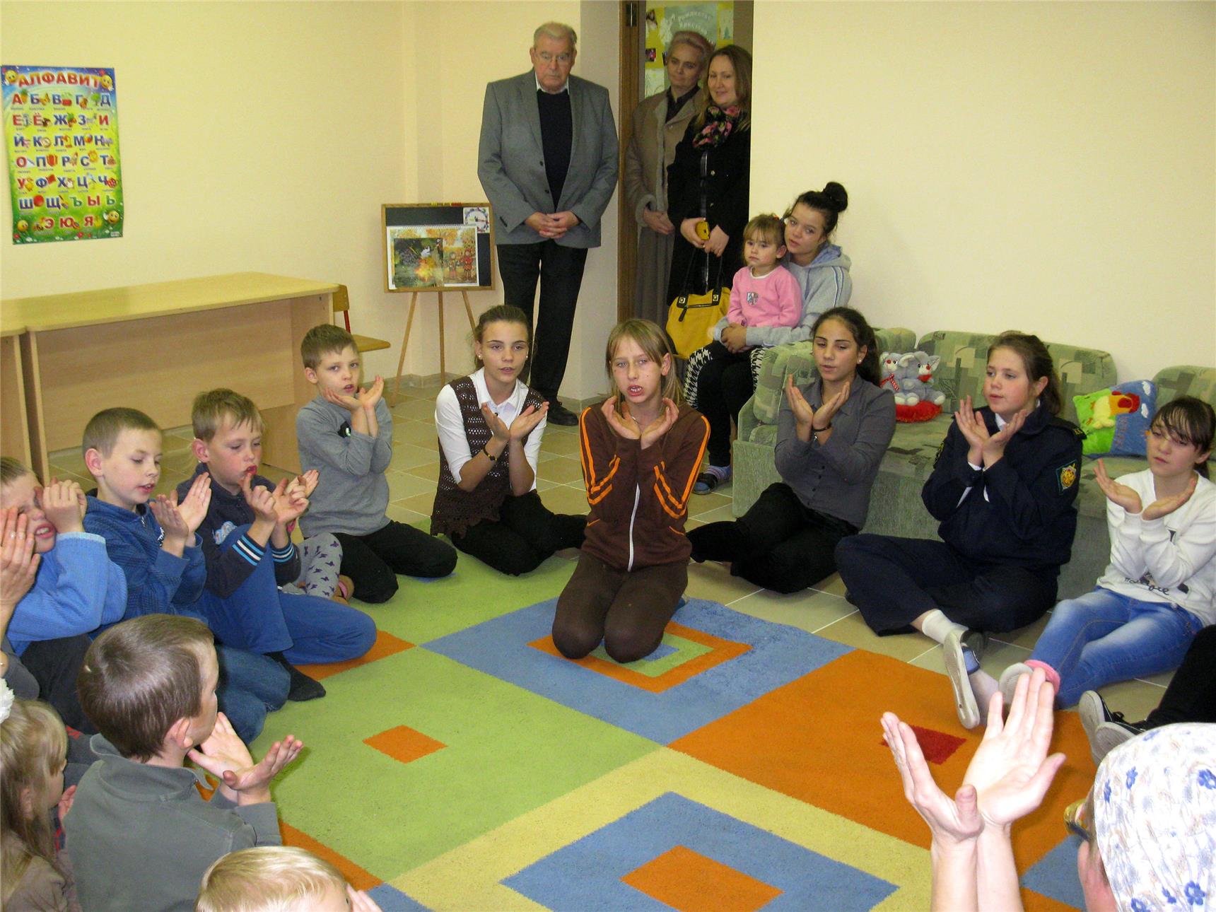 Besuch aus Paderborn: Ulrich Gelhard von der Caritas-Konferenz St. Liborius bei einer Kindergruppe im Sozialzentrum Mamonowo. (Foto: Dirk Lenschen)