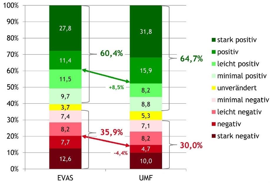 Abbildung 1: Erfolgsquote der Vergleichsstichprobe (EVAS) und der Flüchtlingsstichporbe (UMF).IKJ