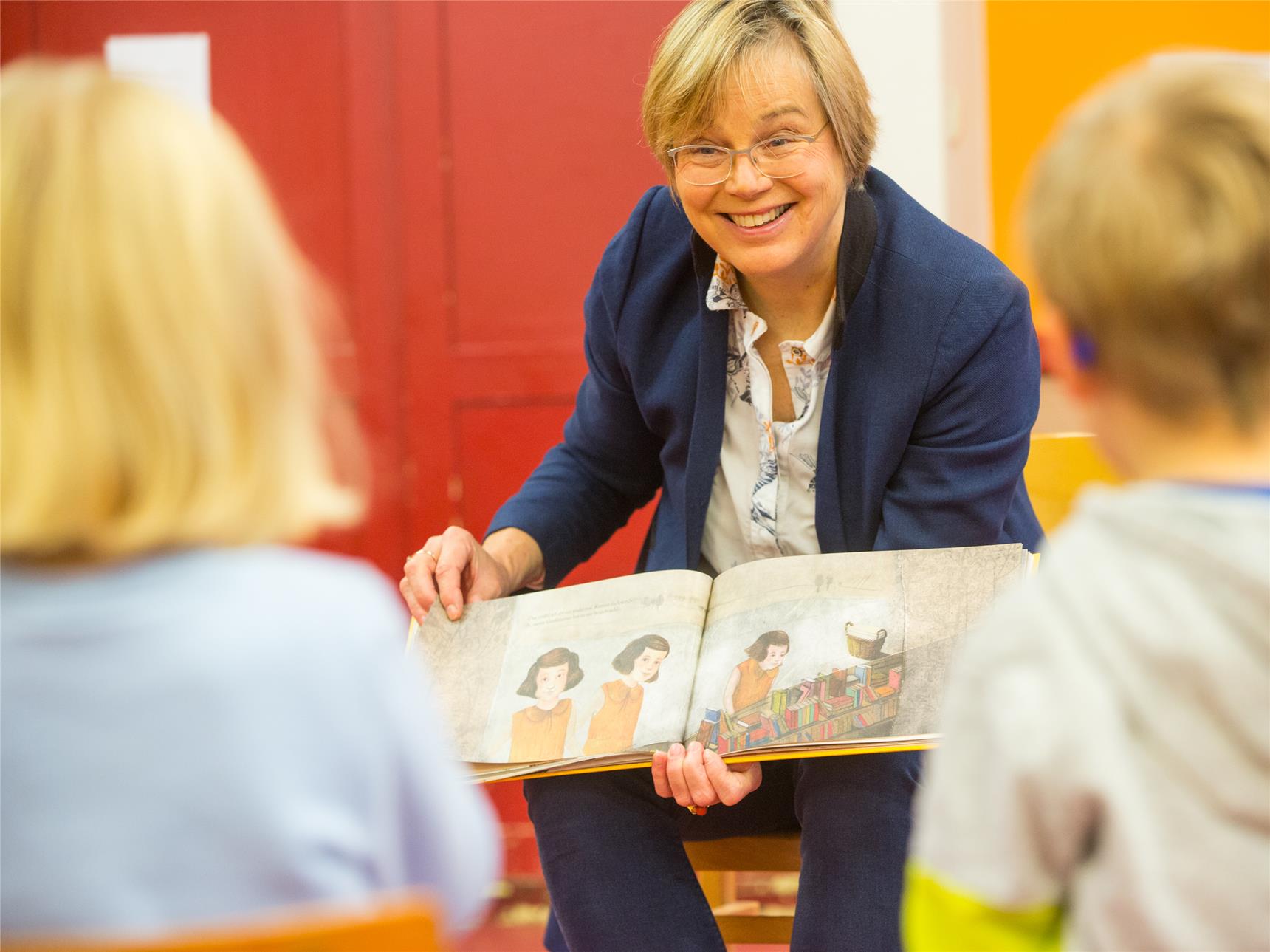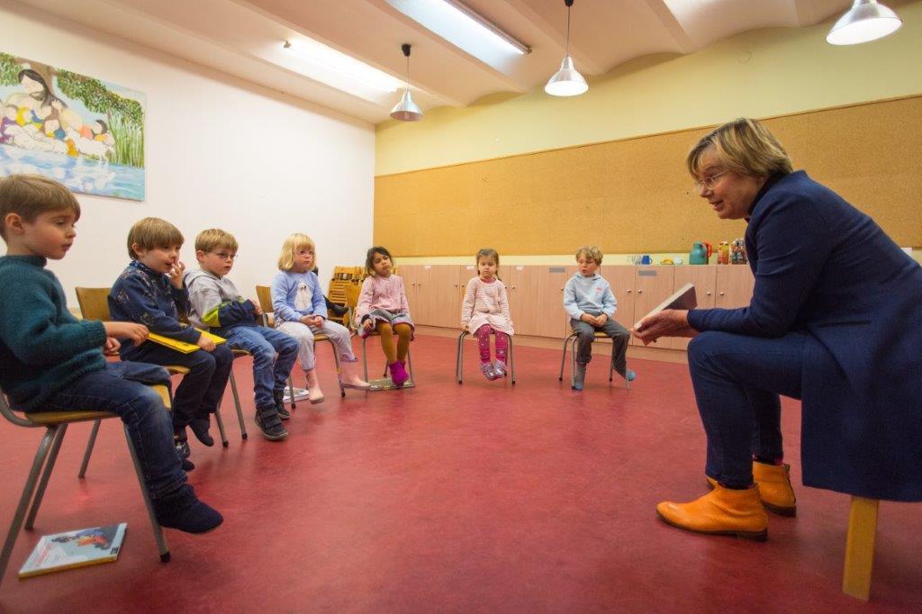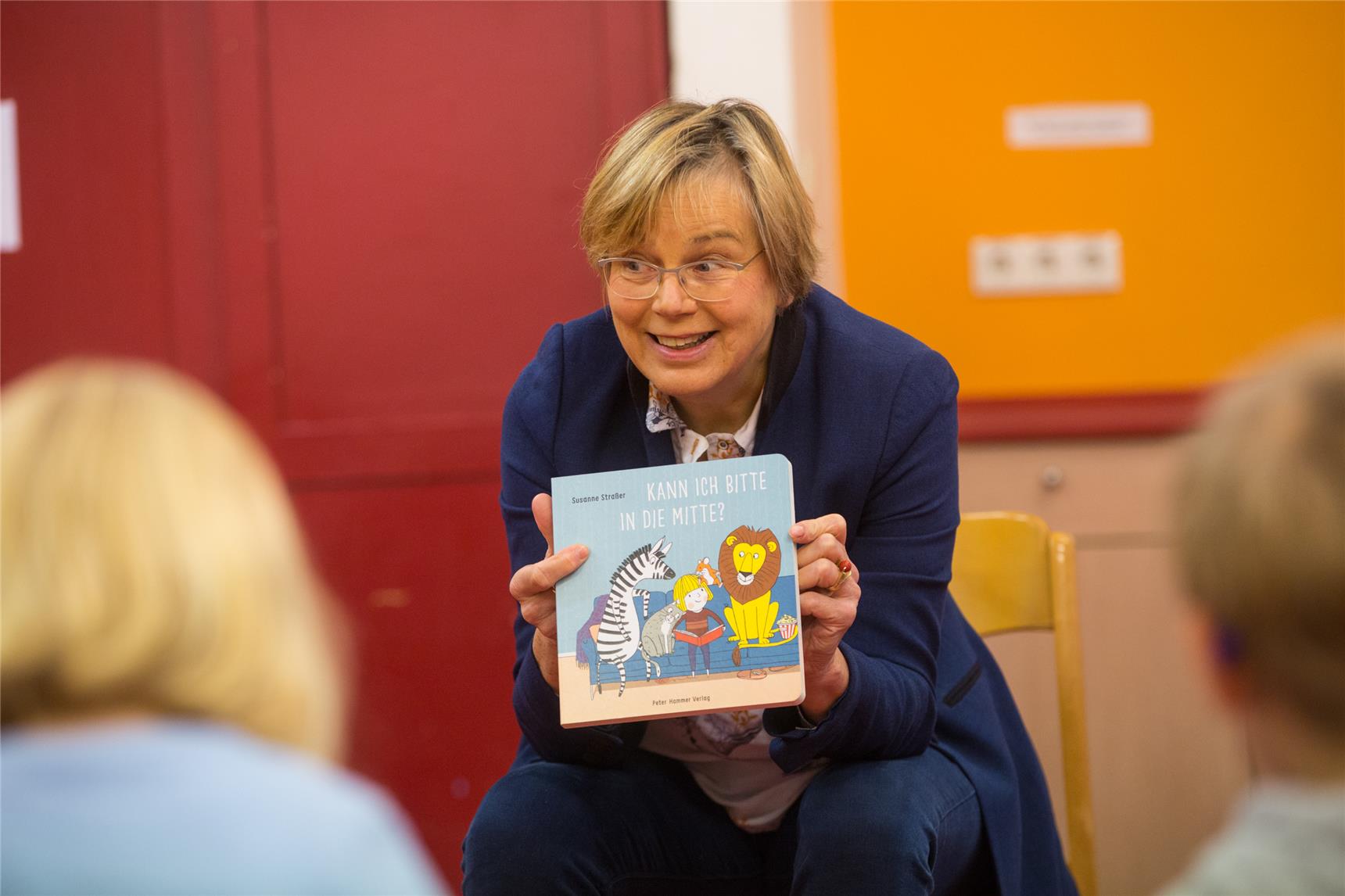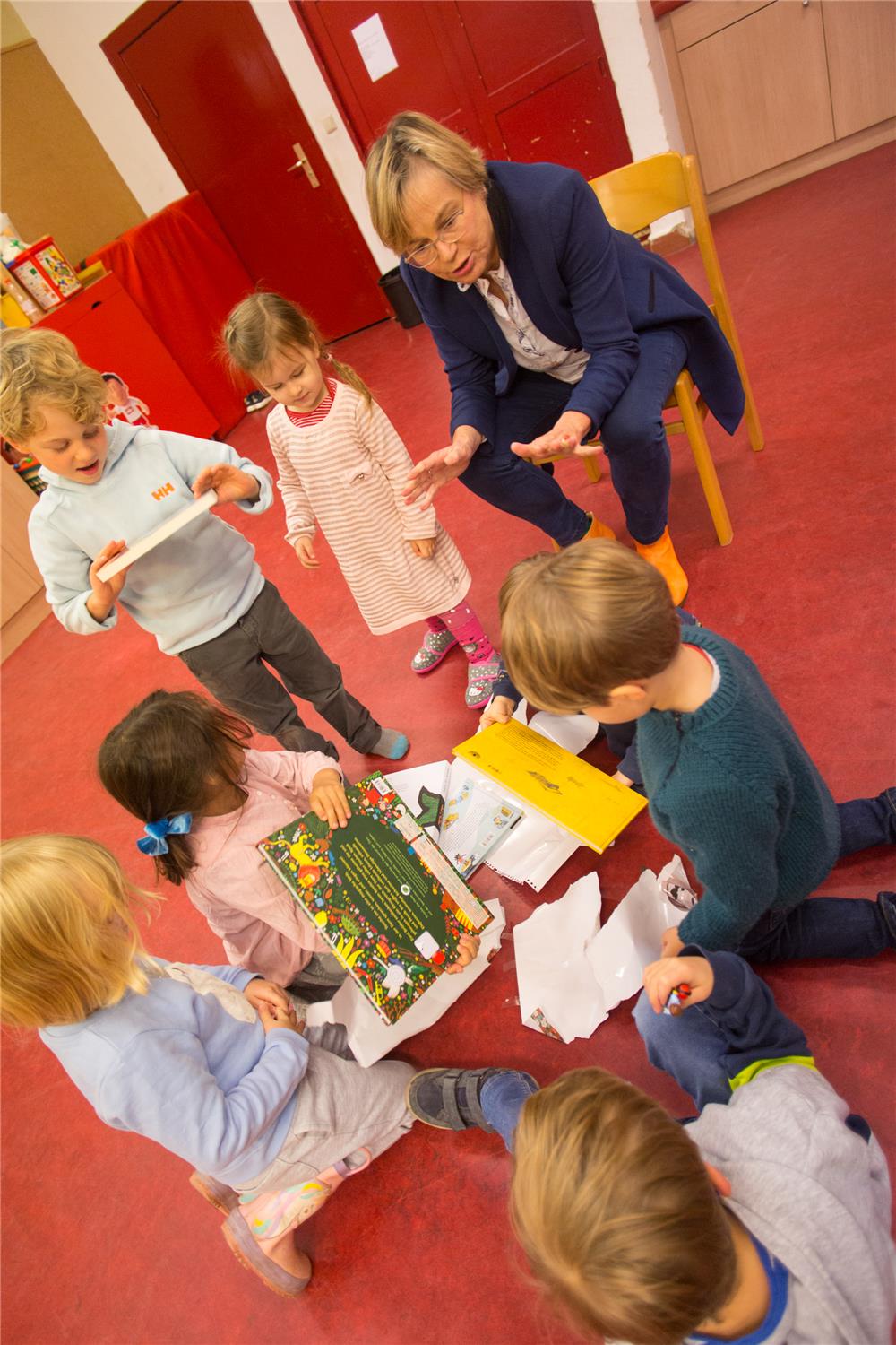 Fotos der Caritas-Präsidentin beim Besuch einer Berliner Kita anlässlich des bundesweiten Vorlesetages. (Fotograf: DCV/ Walter Wetzler):