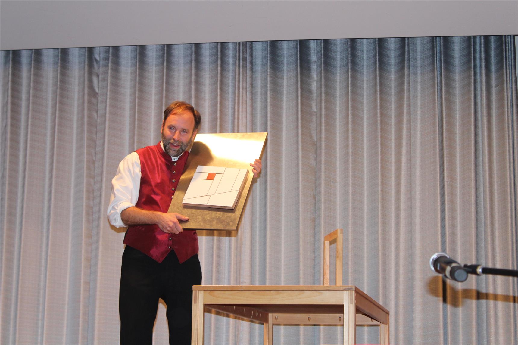 Vorstand Stephan Lang begrüßte anschließend im Kolpinghaus alle Mitarbeitenden, seine Vorstandskollegen Norbert Schellmann und Markus Tischler, Diakon Mario Unterhuber, Pfarrvikar Rupert Wimmer und Dr. Georg Betz. Den lobenden Worten von Diakon Unterhuber schloss sich Lang zu einhundert Prozent an: „Sie alle sind das soziale Gesicht der Caritas, das Aushängeschild.“ Nach dem gemeinsamen Essen stellte Ingrid Schnell zusammen mit ihren Kolleginnen der MAV die Entstehung des neuen Leitbildes des Kreis-Caritasverbandes vor (wir berichteten). Ihr, sowie der Dank der Vorstandschaft, galt Dr. Georg Betz, welcher die Entstehung des Leitbildes von Anfang an begleitet hatte. Stellvertretende Heimleitung des Altenheims St. Konrad, Iris Riglsperger, kündigte anschließend Pfarrvikar Rupert Wimmer an. Dieser hatte sich auch Gedanken zum Thema Leitbild gemacht. Dazu hatte er einen Bilderrahmen und verschieden große Holzstücke mitgebracht. Der Rahmen, so Wimmer, ist die Caritas. Im Rahmen ist Platz für Liebe, Achtung vor den Menschen, Gesetze, Gefühl, Humor. Und so ganz ohne Zaubertrick ging es auch hier nicht ab. Obwohl Wimmer neue, bunte Elemente hinzufügte, passte doch alles in diesen Rahmen.