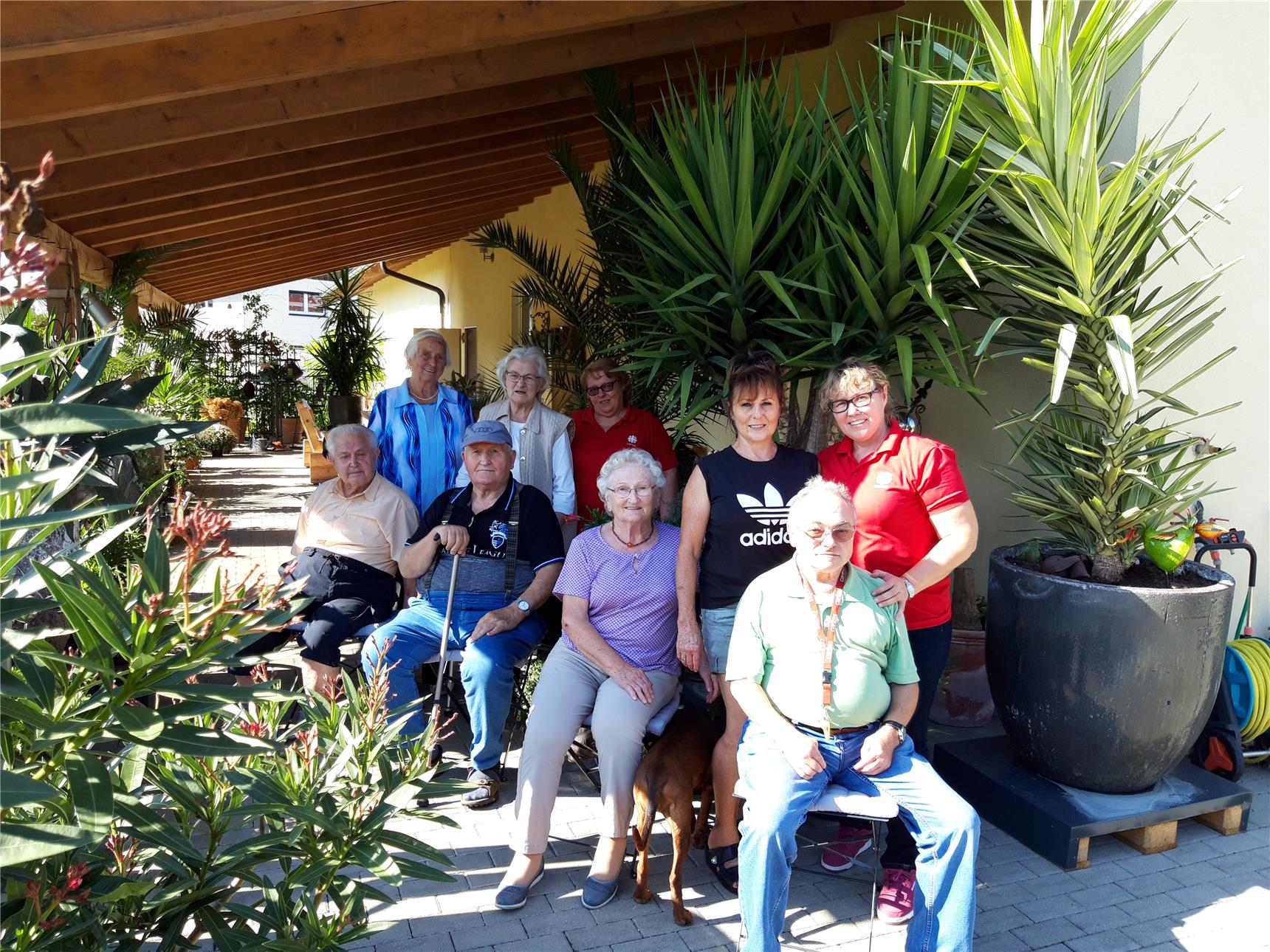 Sie besuchten, sehr zur Freude von Leo Klafterböck, seine Schwester Edith Jahrstorfer in Moos in der Nähe von Deggendorf. Dort wurden alle sehr herzlich empfangen und mit Kaffee und Kuchen verköstigt. Die Ausflügler bestaunten die herrliche grüne Oase und fühlten sich unter den Palmen und anderen südländischen Pflanzen wie in der Toskana.