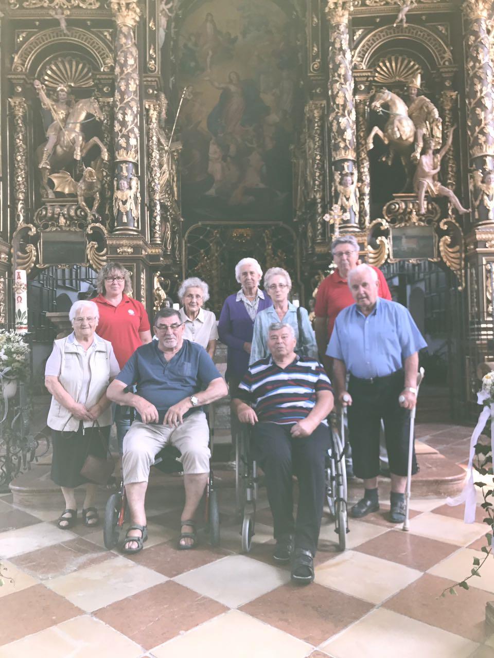 Diesmal ging es zur Wallfahrtskirche Sammarei bei Ortenburg. Sammarei wird auch gerne Bayerisches Assisi genannt. Erstaunt waren die Ausflügler darüber, dass in der Kirche eine hölzerne Feldkapelle mit Schindeldach steht. Viele weitere interessante Details über die Wallfahrtskirche erfuhr die Gruppe bei der Führung, u. a. auch, dass Sammarei nach Altötting der größte Wallfahrtsort der Diözese Passau ist. Nach einem gemeinsamen Gebet und einer Stärkung im Biergarten ging es mit vielen neuen Eindrücken wieder nach Hause.