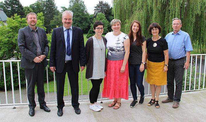 Caritasdirektor Juch betonte, dass er das Interesse und den Einsatzwillen der jungen Frauen sehr bemerkenswert finde. Er zeigte sich davon überzeugt, dass sie viele Impulse für das weitere Berufsleben aus ihrem Einsatz in den Städten Iwano-Frankiwsk und Kolomyja werden mitnehmen können. Und dass sie die Sprache gut erlernen, dafür werde Dolmetscher Igor Sorge tragen. Geschäftsführerin Natalia bedankte sich bei Dr. Juch für die partnerschaftliche Verbundenheit der Caritasverbände; Fulda sei ein wichtiger Unterstützer der Behindertenhilfe in Iwano-Frankiwsk. An die beiden Freiwilligen gewandt sagte sie, man werde sie im Oktober mit offenen Armen empfangen.