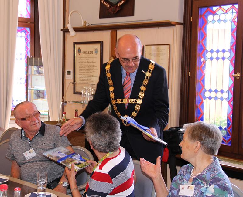 Bürgermeister Schwenk überreichte den polnischen Gästen im Rahmen des Empfangs im Rathaus ein Hünfeld-Buch zur Erinnerung an ihren Aufenthalt.C. Scharf/Caritas FD