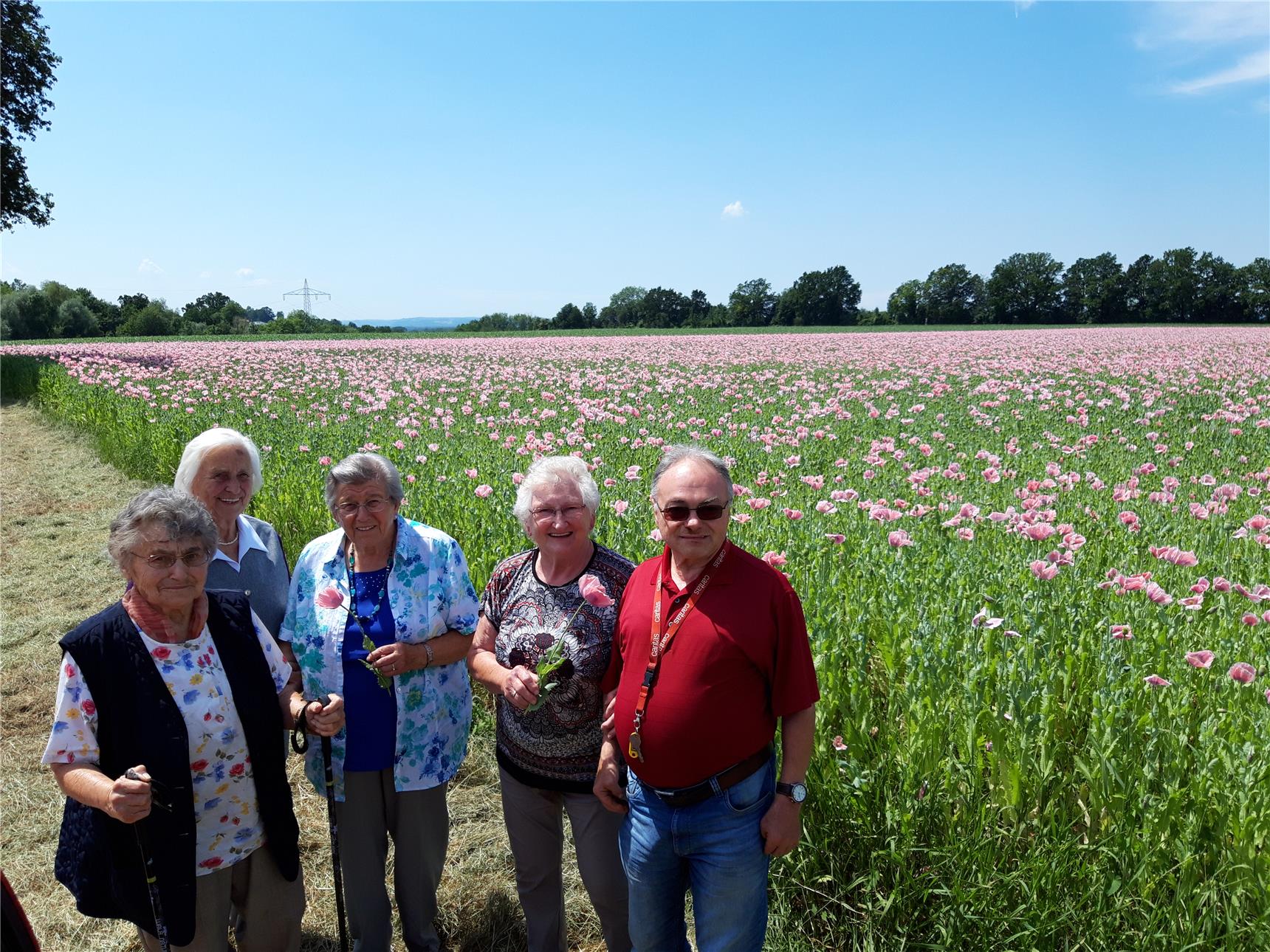 Fleißig ist die Caritas Ausflugsgruppe unterwegs. Zuerst bestaunten die Ausflügler das große Graumohnblumenfeld in Reichenberg. Anschließend ging es weiter zum Barockstift Reichersberg am Inn. Nachdem die Ausflügler das herrliche Gotteshaus besichtigt hatten, schauten sie sich den Park im Innenhof des Stifts noch an. Ein Biergarten lud zur gemütlichen Einkehr ein. Die Senioren waren sich einig: Ein wunderschöner Ausflug.