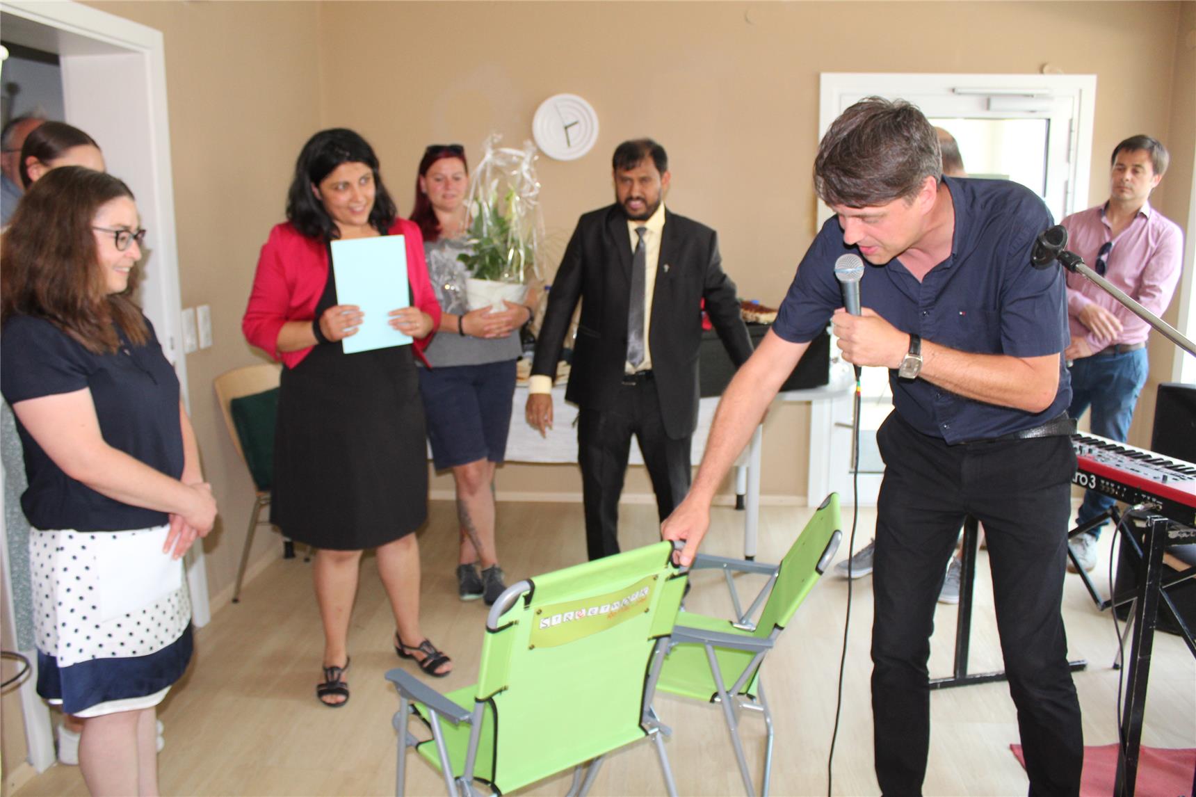 Jakob Kandlbinder freute sich, dass man mit Viviana Mercurio nach langer Suche gefunden hat. Sie ist Mama und eine Powerfrau. Er überreichte Mercurio zwei grüne Stühle, versehen mit dem Streetwork-Emblem mit den Worten: " Diese Stühle sind symbolisch, sie solle bedeuten, dass wir hoffen, dass du lange bei uns bleibst, denn wir sind froh, dich zu haben.