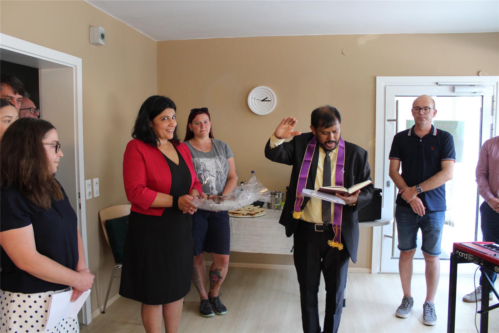 Gut sichtbar und schön gemütlich eingerichtet ist das Büro von Dr. Viviana Mercurio, Streetworkerin am Oberen Markt 4 in Arnstorf. Und jetzt, da alles fertig ist, gab es eine kleine Einweihungsfeier mit Segnung der Räume. Kathrin Seiler, geschäftsführende Vorständin des Kreis-Caritasverband Rottal-Inn e. V. (Träger von Streetwork Arnstorf sowie Streetwork Pfarrkirchen u. Simbach) hatte für das Büro ein schönes Kreuz mitgebracht und Blumen für Viviana Mercurio.