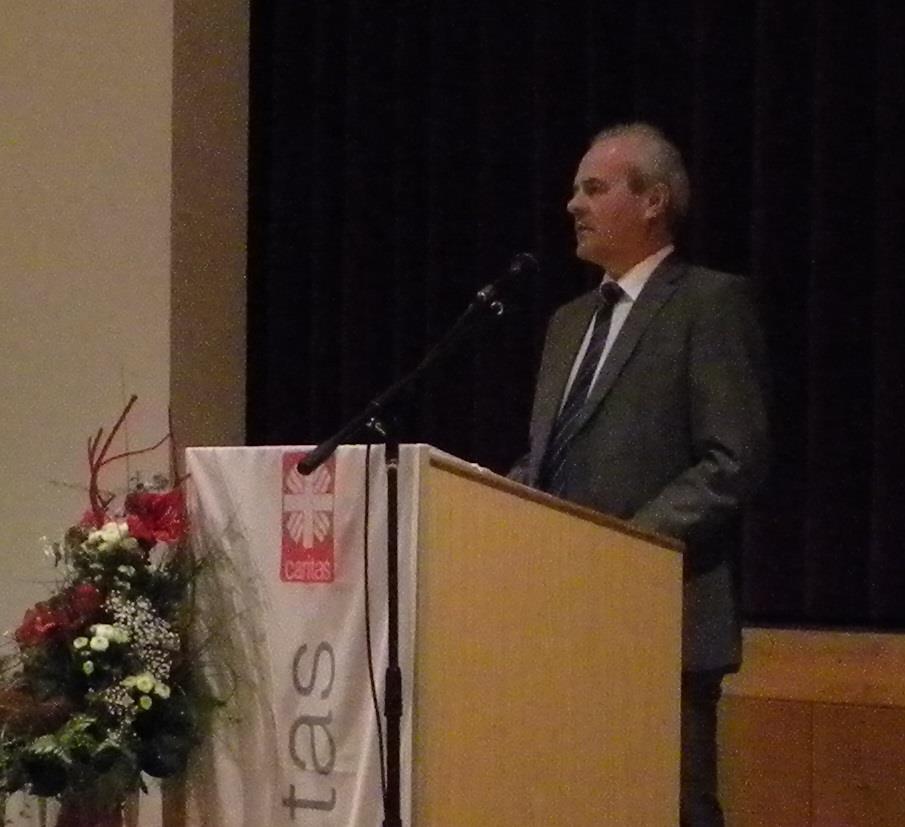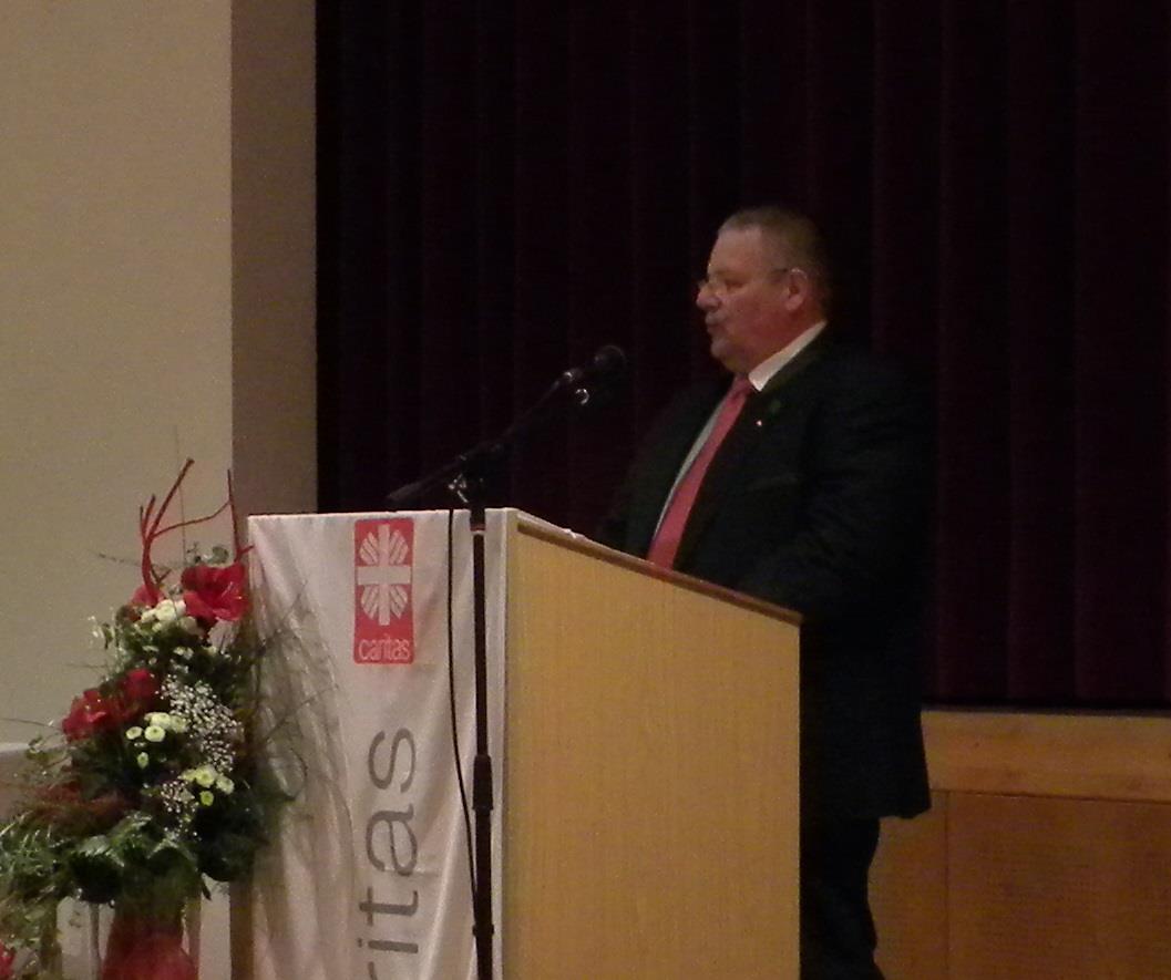 Aufsichtsratsvorsitzender Franz Barth, meinte, dass auch er heute eine Premiere hat. Es ist das erste Mal, dass ich zu Ihnen sprechen darf. Beeindruckt sei er von den Leistungen, welche die 360 Mitarbeiter/innen in 11 Einrichtungen erbringen und dankt allen Mitarbeitenden im Namen des gesamten Aufsichtsrates für die engagierte Arbeit, die sie jeden Tag leisten. „Es sind die Menschen, die die Caritas ausmachen“, so Franz Barth. Man könnte dies auch mit einem Boot vergleichen, der Kapitän kann ohne Mannschaft sein Schiff nicht steuern. „Sie sind das Fundament auf das wir bauen, sie verkörpern die Caritas nach außen, geben der Caritas ein Bild der Menschlichkeit.“ 28 Ehrungen für langjährige Mitarbeiter/innen zeigen, dass sie gerne für die Caritas arbeiten, zeigen dass ein gutes Betriebsklima herrscht,“ so Franz Barth. Er informiert noch über die neuesten Entwicklungen im Caritas-Kreisverband und dankt Norbert Schellmann und Martina Schmauß, die kurzfristig die Interimsgeschäfte übernommen haben. Sie haben das Schiff schon in wesentlich raueren Zeiten gesteuert und nach vorne gebracht und werden es auch weiterhin nach vorne bringen und erklärt noch kurz die Funktion und Arbeit des Aufsichtsrates.