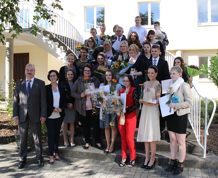 Nach einer Laudatio durch Diözesan-Caritasdirektor Dr. Markus Juch, der auf die Wichtigkeit des Berufes "Altenpflege" für die Gesellschaft hinwies und den Absolventen alles Gute wünschte, verabschiedeten auch Einrichtungsleiterin Dajana Herbst und Kursleiterin Waltraud Röhl-Pfingsten die Klasse, die sie in ihren Ansprachen als jung, aufgeweckt und engagiert skizzierten. Gemeinsam überreichten Caritasdirektor und Schulleiterin die Zeugnisse an die examinierten Altenpflegerinnen und Altenpfleger, die aus ganz verschiedenen Altenpflegeeinrichtungen der Region in die Ausbildung bei der Caritas entsandt worden waren.