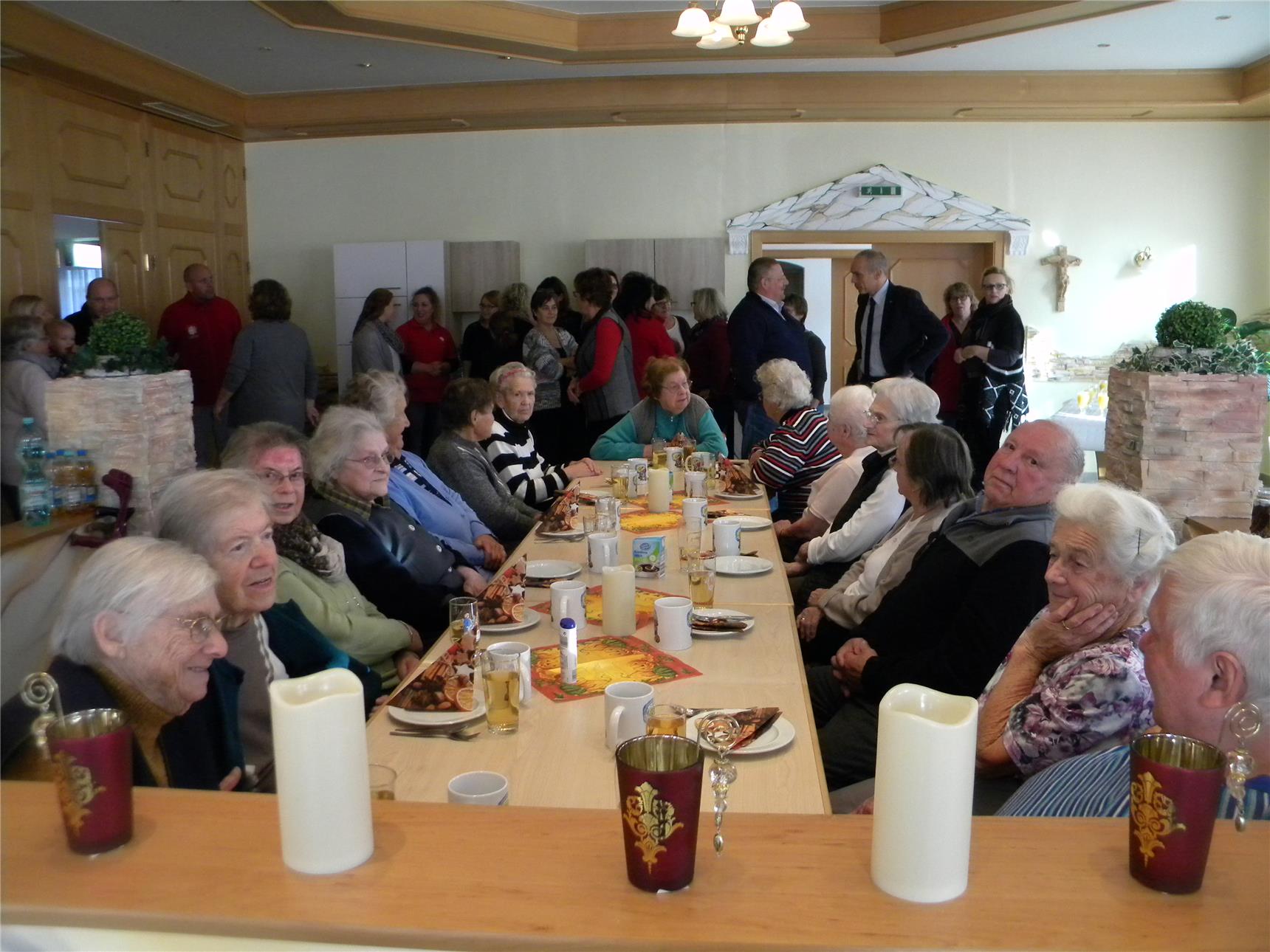 Diakon Manfred Becher, geschäftsführender Vorstand des KCV Rottal-Inn begrüßt, auch im Namen von seinem Vorstandskollegen Norbert Schellmann, alle Anwesenden. Heute ist ein ereignisreicher Tag, nicht nur in Amerika, sondern auch hier in Münchsdorf, so Diakon Becher. Heute wird die Eröffnung des Caritas-Treffpunktes mit Tagesbetreuung in Münchsdorf gefeiert. „Wenn ich in die Gesichter der Senioren der Tagesbetreuung sehe“, so Manfred Becher, „dann sehe ich nur zufriedene Gesichter.“ Die Senioren bestätigen ihm, dass sie sich über die neuen, sehr schönen Räume und vor allem über deren Größe freuen.