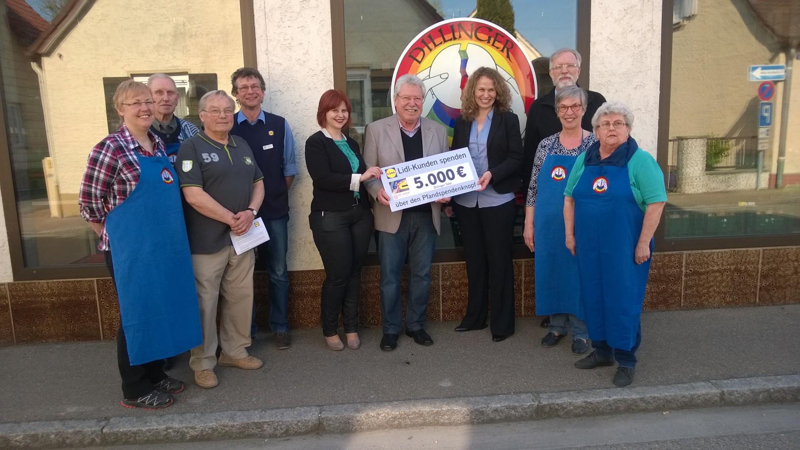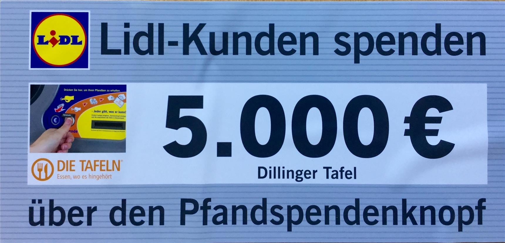 Die Caritas hatte sich als Träger der Dillinger Tafel um einen Zuschuss aus dem Lidl-Pfandspendenprojekt für den Bereich Hygiene-Lebensmittelkühlung beim Bundesverband der Deutschen Tafeln beworben. Bereits seit März 2008 können Kunden von Lidl über einen Pfandspendenknopf bei der Rückgabe von Flaschenpfand entscheiden, dass der Pfand den Tafeln in Deutschland gespendet wird. Aus diesem Spendentopf erhielt die Dillinger Tafel den Maximalbetrag von 5.000 € für die Anschaffung einer Kühlzelle mit Tiefkühlabteil für die neuen Ausgaberäume in der Pfauenstrasse in Dillingen.