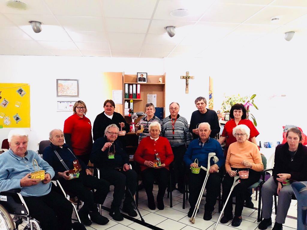 Fleißig waren sie wieder, die Senioren und Betreuerinnen der Pfarrkirchener Caritas Tagesbetreuung. Die Senioren haben mit ihren Betreuern fleißig Osternester gebastelt. Anschließend wurden die Osternester mit einem kleinen Schokohasen, bunt gefärbten Eiern und anderen Süßigkeiten gefüllt. Stolz präsentieren die Senioren mit ihren Betreuerinnen Irmi Göblmeier und Manuela Kammergruber ihre Osternester.
