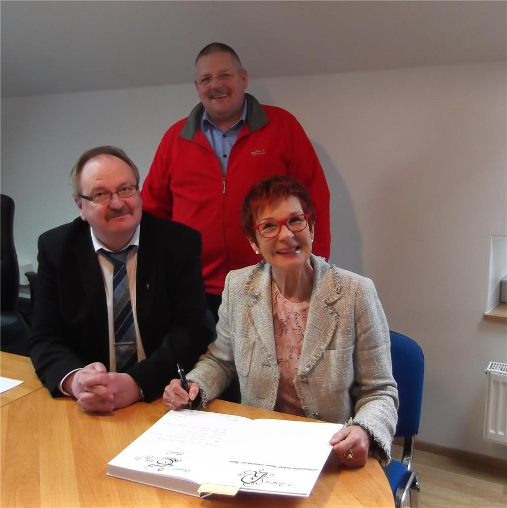Reserl Sem, MdL, trägt sich ins Kampagnenbuch Flüchtlingshilfe ein