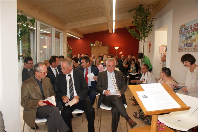 Vorsitzender Graf konnte in seiner Begrüßung für die vielfältige Unterstützung danken, die bei der Umsetzung des Projektes erfahren werden konnte. Insbesondere dem Architekten Michael Gumpp und seinem Mitarbeiter Rainer Häußler sowie den bauausführenden Firmen sei es zu verdanken, dass bei schmalen Budget die Anforderungen an den neuen Standort und das Gebäude umgesetzt werden konnten. "Für die Besucher ist die Tagesstätte ein wichtiger Ort geworden, mit nunmehr deutlich mehr Platz als bisher in Lauingen". Für Bezirkstagspräsident Reichert ist es wichtig, "...den Menschen zu helfen, die sich selbst im Alltag nicht mehr zurecht finden", wie er in seinem Grußwort hervorhob. Heidrun Ostertag, Mitarbeiterin im Team, stellte den Gästen die besonderen Angebote und Struktur der Einrichtung vor. Durch die Tagesstruktur, die durch den Besuch und die Angebote ermöglicht wird, werde eine Stabilisierung und Verbesserung erreicht, die Rückfälle vermeide. Auch Landrat Leo Schrell stellte die Bedeutung der Einrichtung für Menschen mit psychischer Behinderung heraus und lobte das Engagement des Mitarbeiterteams und des Trägers. "In einer Zeit des Wohlstandes hat die Zunahme psychischer Erkrankungen weniger mit materiellem Mangel, als vielmehr mit Einsamkeit, Angst und Enttäuschung zu tun", so Schrell. Dies wurde vom Oberbürgermeister Frank Kunz genauso gesehen, der sich freute diese Einrichtung nunmehr in Dillingen zu haben.
