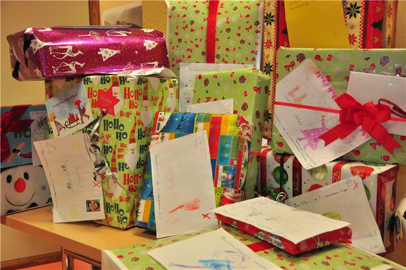 Die Mitarbeitenden der Deutschen Bank haben die Geschenke liebevoll verpackt und den ursprünglichen Wunschzettel der Kinder daran geheftet. Die Caritas verteilt nun die Geschenke an die jeweiligen Familien, damit keines der betreuten Kinder an Heilig Abend leer ausgeht. Die Wunschzettel, die nicht von Mitarbeitenden "abgepflückt" wurden, hat die Geschäftsführung übernommen.