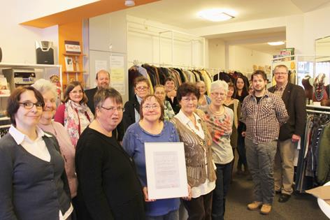 Eine ganz besondere Urkunde ziert die Verkaufsräume des "Knopflochs", dem Second-Hand-Laden der Kontakt- und Beratungsstelle für psychisch-kranke Menschen (KBS) in Trägerschaft des Caritasverbandes für die Region Heinsberg in Erkelenz. Sie bescheinigt, dass das "Knopfloch" sich um den "Teresa-Bock-Preis" der Caritas-Gemeinschaftsstiftung beworben hat. Besonders stolz sind die 30 ehrenamtlichen Mitarbeiterinnen und Mitarbeiter darauf, dass die Bewerbung von einer Kollegin aus ihrem Kreis eingereicht wurde.