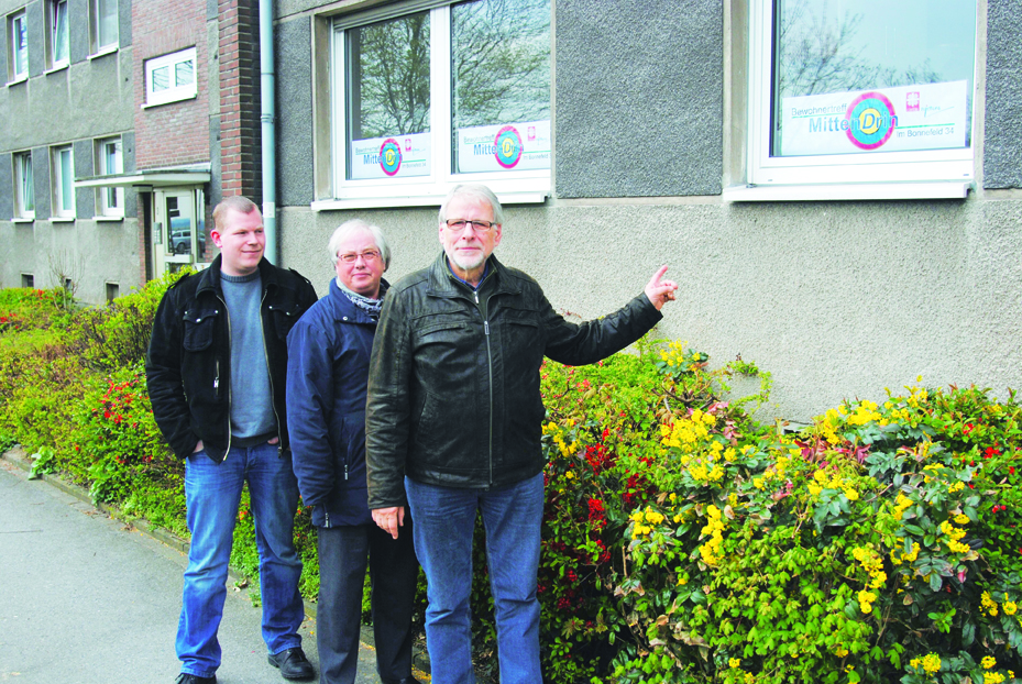 Die Initiatoren des Bewohnertreffs „Mitten Drin“ (v.li.): Marc Schmidtlein, Christa Blokesch, Horst AmbaumFG
