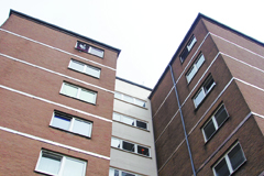 Ruhig ist es in der Hochhaussiedlung "Im Bonnefeld" im Duisburger Stadtteil Mündelheim. Eingerahmt von der B288 und einer Neubausiedlung, wirkt das Wohnviertel im Süden der Revierstadt wie eine eigene kleine Welt. Die weitläufige Anlage lässt weit blicken, dennoch sieht man nur wenige Bewohner auf den Wegen zwischen den grauen Betonklötzen, in denen die Menschen leben. Wer wohnt hier in diesem Viertel? Die Antwort kennt der Wind, vielleicht, denn viel geben die Häuser und die Umgebung nicht preis. Augenscheinlich ist nur, dass sich die Anlage aus den 70er Jahren nicht gerade im besten Zustand befindet.