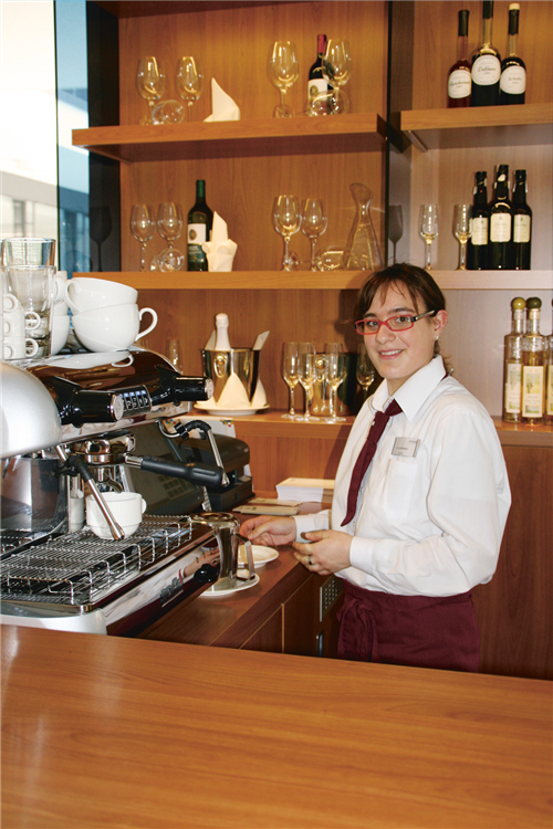 Alles gut bei Jessica Schätzlein, die ihren Beruf, vielleicht auch ihre Berufung gefunden hat. Nur einmal kam sie in Schwierigkeiten: Einige Gäste hatten an der Hotelbar einen (oder zwei, drei…) über den Durst getrunken. "Da hatte ich etwas Angst und wusste nicht, wie ich mich verhalten sollte", erinnert sie sich. Zum Glück kam ihr Marcos Smid zur Hilfe. Der selbstbewusste Servicemann, der sich als Barkeeper ebenso gut auskennt wie in der Veranstaltungstechnik, übernahm die Bedienung und half den Gästen anschließend auch dabei, den Weg in ihre Zimmer zu finden.