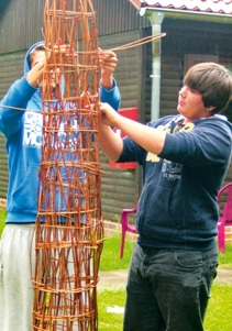 Teilnehmer des Künsterlworkshops fertigen eine Libelle für die Aquamediale."die insel"
