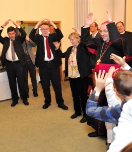 Kinder aus der Schule der St. Florian-Stiftung Neuzelle rundeten die gelungene Veranstaltung mit Liedern und Tänzen ab und leiteten zum gemütlichen Teil über. Viele Gäste nutzten auch hier noch einmal die Gelegenheit, Rudolf Hupe zu danken und ihm alles Gute mit auf den Weg zu geben in seinen neuen Lebensabschnitt.