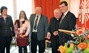 Etwa 70 geladene Gäste waren gekommen. Zuvor feierten über 100 Gläubige die Eucharistie in der Propsteikirche St. Maria Friedenskönigin. Bischof Wolfgang Ipolt ging in seiner Predigt auf einen Satz der Lesung ein: "Was nützt es, wenn einer sagt, er habe Glauben, aber es fehlen die Werke?" Der Bischof machte daraus ein kleines Wortspiel: "Zeig mir deine Werke ohne Glauben und ich zeige dir meine Werke aufgrund des Glaubens." Glaube und Werke - für Rudolf Hupe gehört beides untrennbar zusammen. Und nicht nur seiner Werke wegen wurde ihm an diesem Tag Dank gesagt. Für ihn war der Glaube in seiner Arbeit eine Grundfeste. Das wurde während dieses Festaktes mehrfach deutlich.