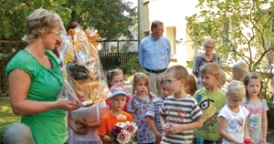 Überbrachten Glückwünsche zum Jubiläum: Die Leiterin und Kinder des katholischen Kinderhauses „St. Elisabeth“.Caritas Hoyerswerda