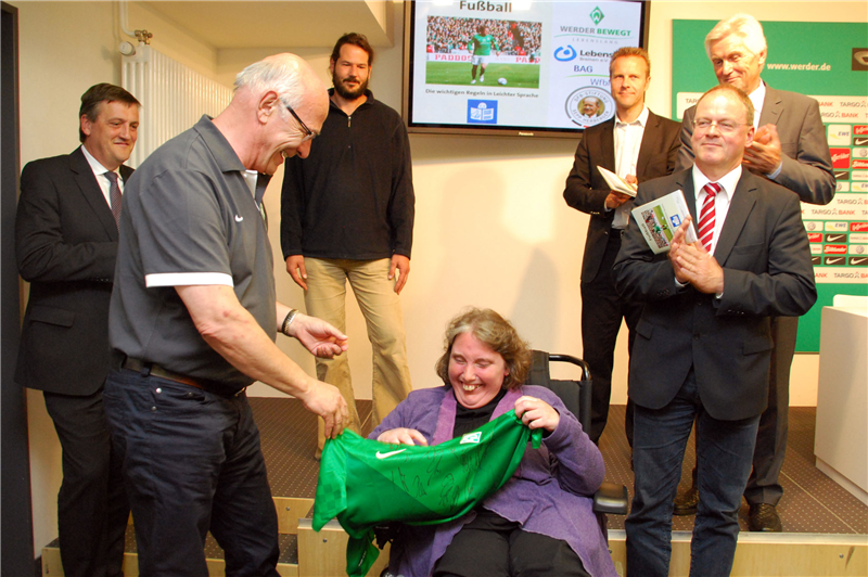 Menschen mit Behinderung ist der SV Werder Bremen schon länger verbunden. "Wir haben eigene Handicap-Mannschaften, eine Blindenfußballmannschaft und arbeiten mit behinderten Kindern, Jugendlichen und Erwachsenen an mehreren Förderzentren", erläutert Werder-Präsident Klaus-Dieter Fischer. Die Idee, die Übersetzung der Fußballregeln in Leichte Sprache zu unterstützen, lag daher nahe.