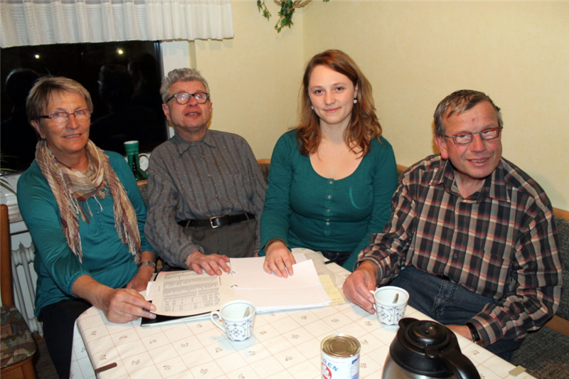 An einem Tisch: Irene Tacken (v.l.) ist zugleich Cousine und gesetzliche Betreuerin von Martin Hakenberg. Gemeinsam sprechen beide die finanziellen Entscheidungen ab. Unterstützt werden sie dabei von Christina Bigge vom Ambulant Betreuten Wohnen des Caritasverbandes Brilon. Martin Hakenberg lebt mit seinem Bruder Friedhelm (rechts) seit 1972 im Elternhaus.Wamers