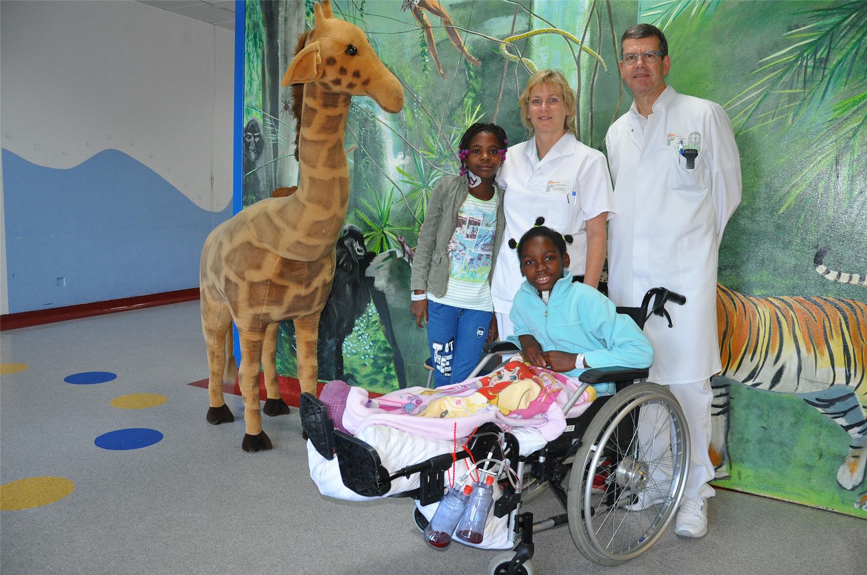 Graca (sitzend) und Imaculada aus Angola wurden im katholischen St.-Ansgar-Krankenhaus in Höxter unentgeltlich behandelt. Dr. Heiner Gellhaus operiert die beiden Mädchen, Schwester Heike und ihre Kolleginnen sorgten für die Pflege und eine familiäre Atmosphäre. (Foto: Klinikum Weser-Egge)