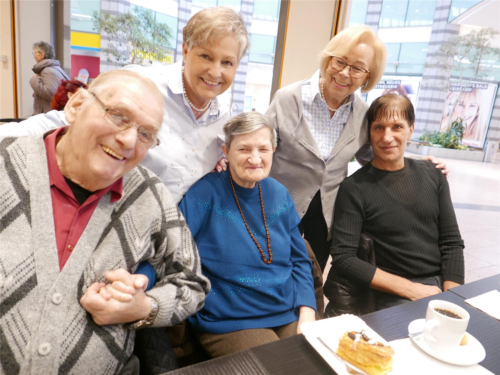 "Wir backen Glücksmomente." Der Slogan von "Karlchens Backstube" könnte an diesem Nachmittag passender nicht sein. Die Gruppe, die gerade an dem Tisch des Bäckerei-Cafés in einem Einkaufszentrum in Bad Oeynhausen Platz genommen hat, ist gut drauf. Zu Filterkaffee und Kirsch-Joghurt-Schnitten wird viel gelacht. Annegret (66) will heute für sich und "ihren" Hans (77) "endlich" einen Freundschaftsring kaufen, quasi als Überraschung, was Hans eher gleichmütig zur Kenntnis nimmt. "Diese jungen Leute", kommentiert das trocken Wladimir (58), der erst einmal loszieht, um sich Zigaretten-Hülsen zu besorgen.