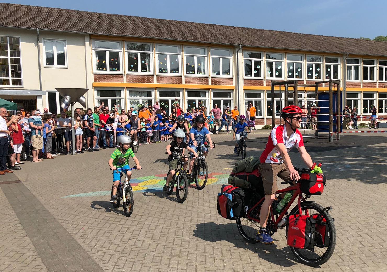 Abfahrt: Mit einem Fest wurde Dennis Breiser auf seine Tour durch Europa verabschiedet. (Foto: Caritas Iserlohn)