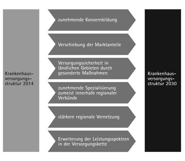Aus den genannten Rahmenbedingungen lassen sich künftige Entwicklungstrends ableiten, die zur skizzierten Krankenhausversorgungsstruktur im Jahr 2030 führen werden:
