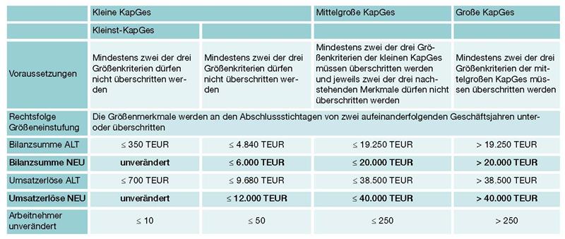 Ergänzt wird die deutliche Erhöhung der Schwellenwerte durch eine neue Definition der Bilanzsumme und der Umsatzerlöse. Im Handelsgesetzbuch (HGB) wird erstmals geregelt, dass ein auf der Aktivseite ausgewiesener nicht durch Eigenkapital gedeckter Fehlbetrag nicht in die Bilanzsumme einzubeziehen ist.