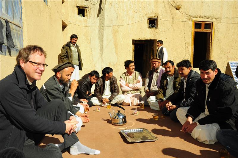 Oliver Müller (links) beim Treffen mit Mitarbeitern der lokalen Partnerorganisation in Daikundi, Afghanistan.Caritas International
