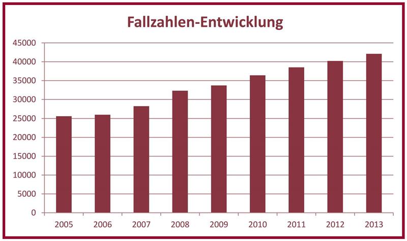 Außerdem kam es nach einer Reihe von medial intensiv beachteten Fällen von Kindeswohlgefährdungen sowie Kindstötungen durch Eltern seit dem Jahr 2005 zu jährlichen Steigerungen in den Fallzahlen bis auf 42.123 Fälle im Jahr 2013 (vgl. Tab. 1). Dies entspricht einem Plus von 64 Prozent.2 In diesem Anstieg spiegelt sich sicherlich ein gesteigertes öffentliches Bewusstsein für den Schutz von Kindern wider. Wenngleich diese Entwicklung generell positiv zu bewerten ist, dürfen damit einhergehende Risiken nicht übersehen werden.