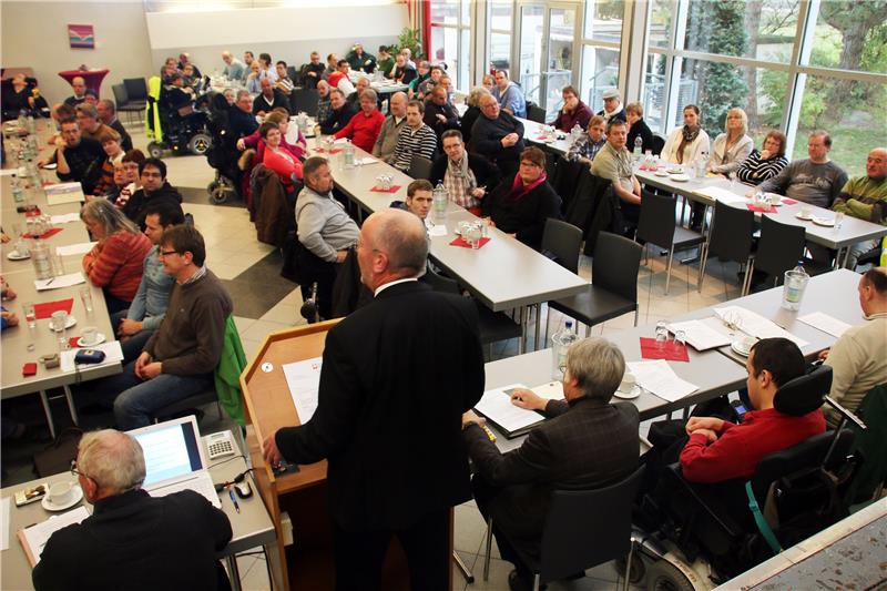Bundesweit vorbildlich sei auch die Mitwirkungsverordnung, erklärte Schäffer. Als sich die Werkstatträte der Caritas vor 25 Jahren gegründet hätten, habe es sie noch nicht gegeben. Aber dass sie 2001 beschlossen worden sei, "das hat auch mit ihrer Arbeit zu tun". An die Gründungszeit erinnerte Werner Heer, ehemaliger Werkstattleiter von Haus Hall (Gescher) und Gründervater, der heute noch als Koordinator in der Konferenz aktiv ist. Das erste Treffen fand auf der Marienburg in Coesfeld statt, jetzt trifft sich die Konferenz viermal jährlich im Barbara-Haus in Dülmen - ehemals ein Soldatenfreizeitheim und seit einigen Jahren selbst ein Integrationsunternehmen der Alexianer in Münster.